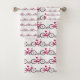 A sporty whimsical set of towels featuring cool pink bicycles. Add a colour to the background if white is not to your liking.
