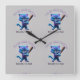 Ready to Play: Blue Striped Baseball Cat Square Wall Clock