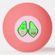This awesome Ping Pong Ball features a graphic image of a green Pea pod containing 2 green peas and a big pink pea. The large pink pea has a cute little face with eyes and a mouth. On the other side of the pea pod in darker pink text it says "Baby Girl Ready to Pop".