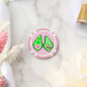 This awesome set of poker chips features a graphic image of a green Pea pod containing 2 green peas and a big pink pea. The large pink pea has a cute little face with eyes and a mouth. On the other side of the pea pod in darker pink text it says "Baby Girl Ready to Pop".