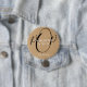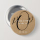 Rustic kraft chic script ready to pop baby shower button featuring elegant black and white text on a rustic kraft background. Designed by Thisisnotme©