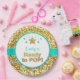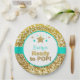 Make your next baby shower POP with these sparkly gold and mint green baby shower plates say "Ready to POP!" You can even add a name to them! The background of these plates looks like gold glitter. They have gold and mint stars on them and a mint coloured ribbon in the centre.