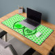 This awesome desk mat features a graphic image of a green Pea pod containing 3 green peas. The largest pea has a cute little face with eyes and a mouth. On the other side of the pea pod in darker green text it says "Ready to Pop".