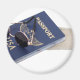 Blue passport needed when travelling between borders, a hammock to string between two solid objects, and a pair of sunglasses display ready for vacation