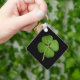 Real four leaf clover shamrock black key chain. Background colour can be customized.