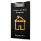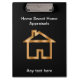 Custom acrylic business clipboard designed for a real estate appraiser or appraisal service or anyone in the real estate industry. Includes a classy gold looking house symbol on and text you can customize on both sides of the clipboard.