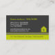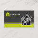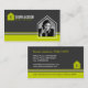 A Real Estate business card with photo featuring a house-shaped logo with monogram in a modern dark grey and lime green colour scheme. When you add your photograph it will automatically crop it to a house shape.