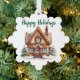 This cute custom realtor Christmas ornament card has your personalized realty company name and Happy Holidays message in chic green typography along with a beautiful image of a house in the winter surrounded by pine trees. Professional holiday cards for real estate business marketing.