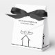 This modern realtor custom favour box is the perfect way to congratulate a homebuyer on their new house purchase or to give out during an open house. Congratulations on your new home or a different custom message for open house marketing.. These minimalist black and white boxes feature a simple line drawing of a house for a simple, chic real estate agency business.