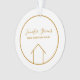 This modern realtor Christmas ornament is custom made with your realty company name under the the agent name in chic typography. This minimalist gold and white gift features a simple line drawing of a house. Contemporary holiday present for an agent working to help you buy a home.