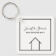 This modern realtor keychain is custom made with your realty company name under the the agent name in chic typography. This minimalist black and white key chain feature a simple line drawing of a house. Contemporary gift for an agent working to help you buy a home.