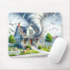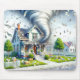A massive tornado made of swirling money dominates a suburban neighbourhood, creating a surreal and chaotic scene.
