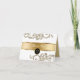 Upscale real estate thank you card with simulated metallic looking house emblem and gold and white floral design elements on the front and the words of thanks you can personalize for your needs. Designed to send thanks and a show of appreciation for your clients, home owners, or sales and office staff. Best used for themes related to real estate agents, agencies, or brokers who value their customers.