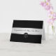 Upscale real estate congratulations card with simulated metallic looking house emblem on the front and the words "Congratulations on your new home" you can personalize and make this your own. Also includes silver accent elements, all designed to send congratulations to your real estate clients. Designed for themes related to real estate agents, agencies, or brokers who value their customers.