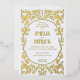 Art Nouveau style floral vertical wedding invitation in gold on white background