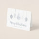 Celebrate the season with this stylish real silver foil Christmas holiday card! This design features a cheerful holiday ornament graphics with a cute script lettering " Merry Christmas ". The inside is designed with photo template and a custom message.