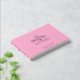 Real Foil Mr & Mrs Personalized Name Pink Wedding Foil Guest Book features the modern calligraphy script text "Mr & Mrs" with your name below accented with a simple love heart, with the text "Wedding Guest Book", location and wedding date below on a pink background. Add your custom text on the spine of the guest book. Created by Evco Studio www.zazzle.com/store/evcostudio