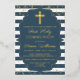 Real Foil Photo Gold Blue Stripes First Communion Foil Invitation