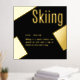 This real gold foil poster art features a unique design about the definition of Skiing in real gold foil which reads: "Skiing is a sport where you spend an arm and a leg to break an arm and a leg."