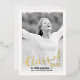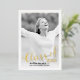 real gold foil Modern Class of 2023 script gold border photo invitation/announcement. It features a photo of the graduate and the text "Class of 2023 in real gold foil.
