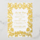A beautiful real gold foil wedding save the date card with traditional hand drawn floral botanicals. A stunning wedding save the date card design with minimalistic classy typography. Traditional script typography and damask wreath create a timeless elegant gold foil wedding save the date card design.