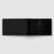 A beautiful real gold foil wedding guest book with monogrammed initials framed by minimalist gold foil line. A stunning black wedding guest book design with minimalistic classy typography. Traditional script typography creates a timeless elegant gold foil wedding guest book design.