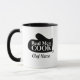 Real men cook funny Father's Day mug gift for dad. Black and white cup with oven mitt logo and humourous quote. Add your own custom name. Create drinking glasses for best dad, greatest father, cooking husband, cool grandpa, brother, friend, family, colleague, coworker, grandfather, boss, grilling buddy, chef, cook, coach, bbq king, grillmaster and other guys. Double sided print. Unique fun presents for him. Handy for home and office.