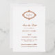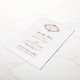 A beautiful real rose gold foil wedding save the date card with monogrammed initials in a traditional elegant wreath. A stunning white and rose gold wedding save the date card design with minimalistic classy typography. Traditional script typography and damask wreath create a timeless elegant rose gold foil wedding save the date card design.