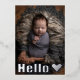 Voici notre élégante carte postale "bonjour" pour bébé. Un modèle moderne qui vous permet de customiser avec 11 de vos photos préférées de votre nouveau bébé. Sur le devant de cette carte il y a de l'espace pour une image complète avec une vraie typographie de feuille d'argent. Au verso, il y a de l'espace pour 10 autres photos. Customisez avec votre propre texte et vos noms pour compléter ce gardien élégant et sophistiqué que votre famille et vos amis chériront pour les années à venir.