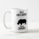 Love comes in all shapes and sizes. This funny "Real Unicorns Have Curves" coffee mug features a simple illustration of a rhino silhouette against a cute rainbow. The perfect gift for unicorn and rhino lovers.