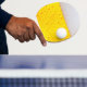 This fun ping pong paddle looks like a realistic golden beer with a foaming white head.
