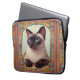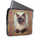 Realistic Cute Siamese Cat Colourful Floral Border Laptop Sleeve