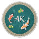 Realistic Green Japanese Koi Fish Pond name initial unique personalized design. This design has japanese koi fish in pond 3D realistic looking pond with lotus flowers. It is a customizable name monogram to add your initials. These asian exotic red and white fishes are believed to bring good luck. They are kept in an aquarium or waterfall indoors or ourdoors.