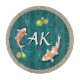Realistic Green Japanese Koi Fish Pond name initial unique personalized design. This design has japanese koi fish in pond 3D realistic looking pond with lotus flowers. It is a customizable name monogram to add your initials. These asian exotic red and white fishes are believed to bring good luck. They are kept in an aquarium or waterfall indoors or ourdoors.