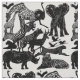 Realistic Safari African Animal Nature Fabric. Elephant, Giraffe, cranes, Tiger, Rhino, Lion, ostrich, etc.