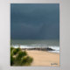 Delaware Beach rain storm is an original digital painting, based on a photo series that inspired me. ( Thanks Veronica!) Moody rain clouds at sea empty a driving rain into a green Delaware Bay. Lush pine trees and sand in the fore ground as white water surges up the beach.
