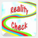A sticker with the words 'Reality Check', can be used as a reminder for the lucid dream induction technique recommended by many lucid dream teachers.
