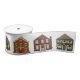Real estate agent Christmas ribbon featuring row of artistic holiday houses, including a gingerbread house for Realtor or housewarming gift.
