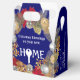 Stylish festive wreath favour boxes designed as part of a realtor-to-client closing gift during the Christmas season. ALL TEXT IS FULLY CUSTOMIZABLE so you can personalize the wording to suit your corporate branding. The text reads CHRISTMAS BLESSINGS ON YOUR NEW HOME. The design shows a white typography against a vibrant BLUE background. The O of HOME is replaced with a key. On the side, you can add your name and company name, or personal message to your client. You can change the background colour by clicking on Customize Further and choosing from the colour palette available. A wide range of matching gifts are available so you can create corporate gift sets for your clients at any time of year.