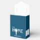 Stylish teal NEW HOME favour boxes designed as part of a realtor-to-client closing gift. ALL TEXT IS FULLY CUSTOMIZABLE so you can personalize the wording to suit your corporate branding. The text reads BLESSINGS ON YOUR NEW HOME with Joshua 24:15 Bible verse - As for me and my house, we will serve the Lord. The image shows a white typography against a stylish TEAL background. The O of HOME is replaced with a key. On the side, you can add your name and company name, or personal message to your client. On the other side, you can replace the panel by uploading your logo (please remember to delete 'Add your logo' text afterwards!) You can change the background colour, by clicking on Customize Further and choosing from the colour palette. A wide range of matching gifts are available so you can create corporate gift sets for your clients. Christmas version is also available in other colours.