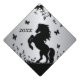 Rearing Black Stallion / Horse on Silver Graduation Cap Topper