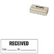 This business stamp is a text template. You can edit the text to show a custom message. (Shown: RECEIVED Date: By:) There are blank lines next to the text for date and by so that you can write that information after stamping if desired.