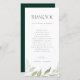 Wild Forest Foliage, réception de mariage merci carte de table. Modèle fournit plusieurs lignes pour votre message de remerciement personnalisé. Caractéristiques, support couleur vert émeraude.