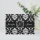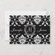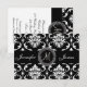 Cartes de réception élégantes et audacieuses avec monogramme et motif damas noir et blanc que vous pouvez insérer dans votre pochette d'invitation de mariage avec les invitations carrées de notre magasin. Personnalisez avec les détails de votre réception de mariage et vos informations personnelles. Elke Clarke © Pour une carte d'invitation de mariage carrée de 5,25 x 5,25 pouces ou plus grande. Contactez luxuryweddinginvitations@gmail.com pour obtenir de l'aide sur d'autres combinaisons de couleurs.