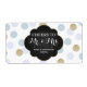 Faites votre propre "Bravo à M. & Mrs.", champagne de réception de mariage en faveur de ce étiquette personnalisé. Ces jolis étiquettes de champagne do-it-yourself sont uniques et ajoutent une touche de classe à votre fête. Ils présentent des pois de parties scintillant bleu et faux or avec un arrière - plan en damier. Les étiquettes sont un peu plus grands pour couvrir la plupart des mini étiquettes de vin et s'adaptent parfaitement sur les mini bouteilles de champagne de taille standard. Conçu par Victoria d'Invitations VG