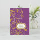 NOTE: This is a flat printed image, there are no jewels, raised layers or gold metallic elements. COLOR PALETTE: deep violet purple, soft creamy white with faux gold metallic glitter look DESIGN COLLECTION: Matching formal dinner reception invitation for events at a separate location or exclusive guest list. Inspired by Old Hollywood and her heyday glam era, this wedding invitation set is perfect for elegant, sophisticated, modern wedding celebrations. A classic, beautiful swirling leaf damask style pattern has been graphically designed to look like a silver edged gold glittery embroidered lace design with a golden buckle that has a diamond border over faux glitter. A contemporary typography layout for your invite wording and information updates this vintage retro design. A gorgeous, unique and pretty design for the most discriminating bride.