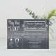 Les futurs invités adoreront cette invitation chic et unique avec typographie sur tableau noir après la réception de mariage. Une variété de polices et un design unique pour les mariés rendent cette invitation facile à personnaliser après la célébration du mariage. Utilisez simplement le modèle fourni pour un look totalement personnalisé. La typographie sur tableau noir donne une sensation vintage tout en restant une tendance actuelle. Ne manquez pas cette conception de mariage unique. Souhaitez-vous une carte de réponse coordonnée spéciale, un timbre ou un accessoire ? Envoyez-moi simplement un e-mail !