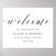 Simple Elegant Calligraphy Script Wedding Reception Welcome Sign in beautiful flowing fancy letters and your personalized names, location, and date. A stylish yet simple formal design in black and white or any background colour you choose. Just click the customize further link, shown under the text personalization area on the right, and choose your custom colour background. This sign poster template makes it fast and easy to create stunning additions to your wedding decor. Signs can be enlarged, there are many sizes to choose from, as well as options for custom framing and matting. Welcome to our wedding custom signage.