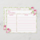 Jolie carte de recette chic shabby avec de belles roses roses roses. Ils sont un excellent moyen de partager des recettes lors d'une douche nuptiale ou d'une fête de fiançailles.