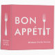 Personalize this "Bon Appetit" family cookbook, with the text, colour, and photograph of your choice. The white fork can be moved or removed.